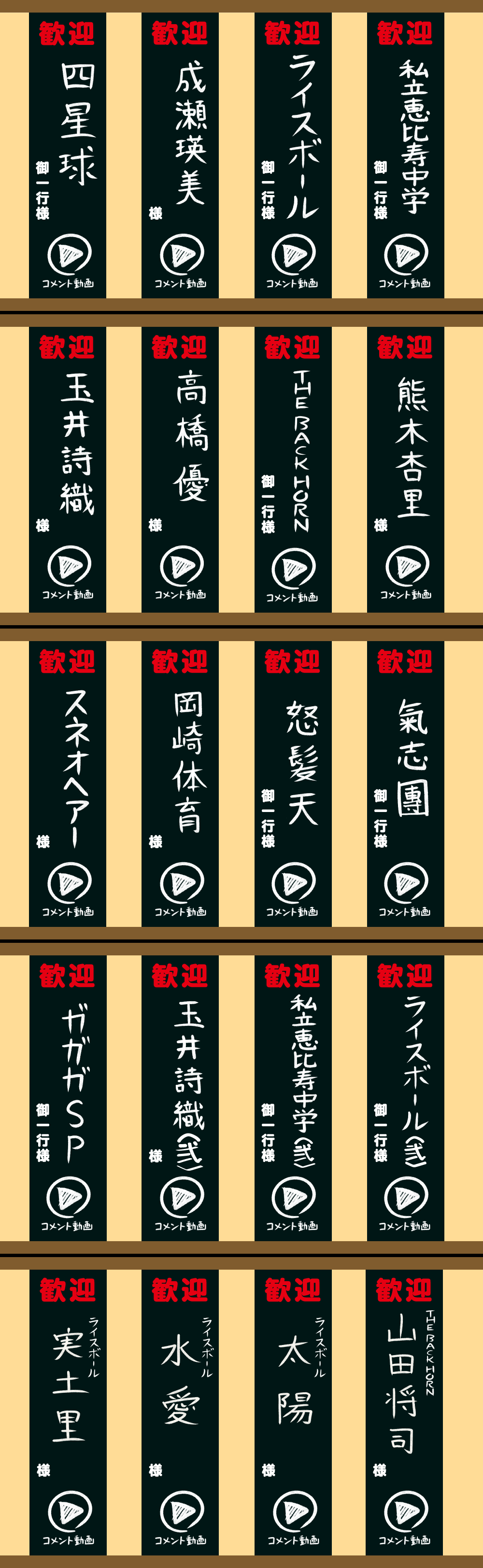 四星球御一行様 成瀬瑛美様 ライスボール御一行様 私立恵比寿中学御一行様 玉井詩織様 高橋優様 THE BACK HORN御一行様 熊木杏里様 スネオヘアー様 岡崎体育様 怒髪天御一行様 気志團御一行様 ガガガSP御一行様 玉井詩織様 私立恵比寿中学御一行様 ライスボール御一行様 ライスボール 実土里様 ライスボール 水愛様 ライスボール 太陽様 THE BACK HORN 山田将司様
